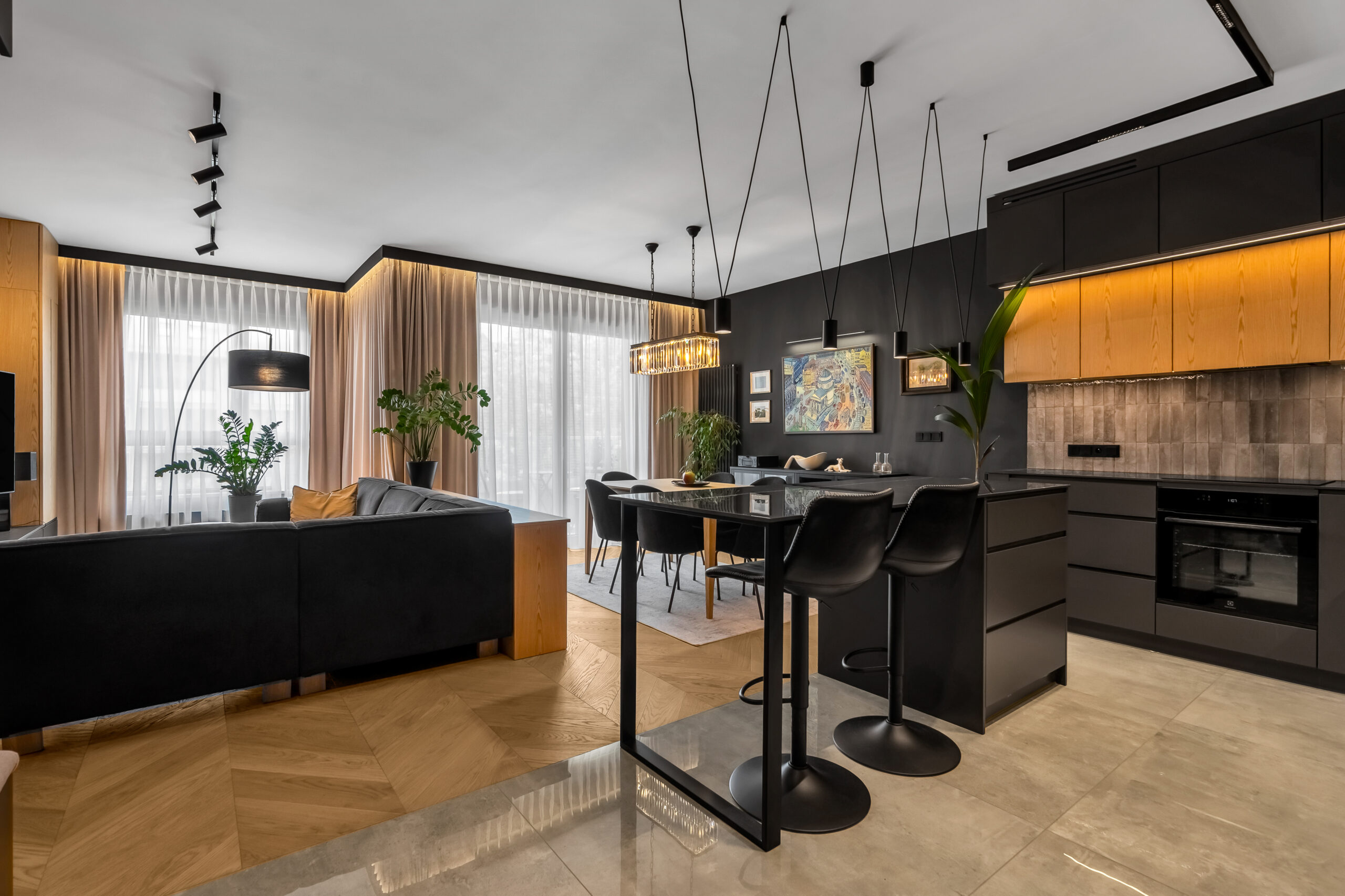 W tej realizacji postawiliśmy na eleganckie i ponadczasowe połączenie naturalnego drewna z głęboką czernią. Dzięki…