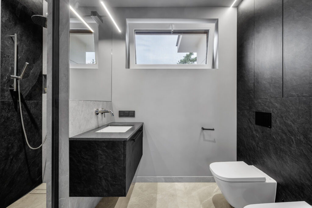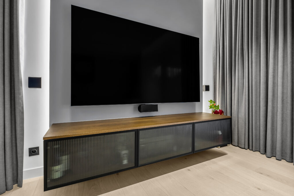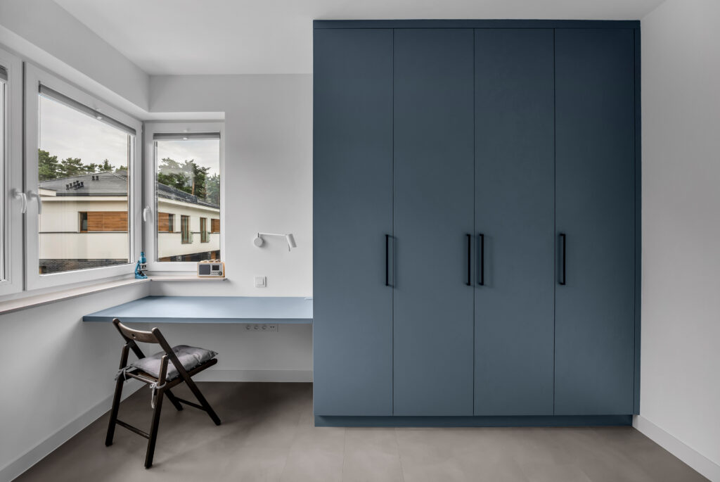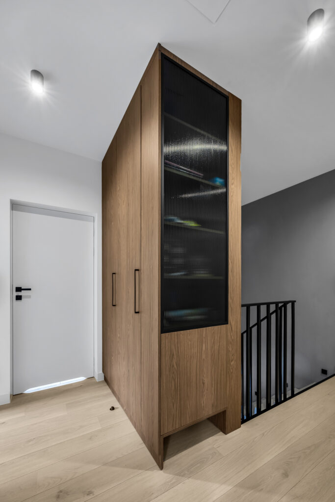 Projekt objął kompleksowe wykonanie zabudów stolarskich na wymiar w wielu pomieszczeniach – od funkcjonalnych i estetycznych biur domowych, przez dwie łazienki wykończone w kontrastującej stylistyce, po kuchnię i strefę dzienną, gdzie dominują czyste linie oraz starannie dobrane detale. Całość łączy spójność stylistyczna, która subtelnie podkreśla charakter wnętrza – nowoczesny, ale ciepły, funkcjonalny, ale z nutą luksusu.