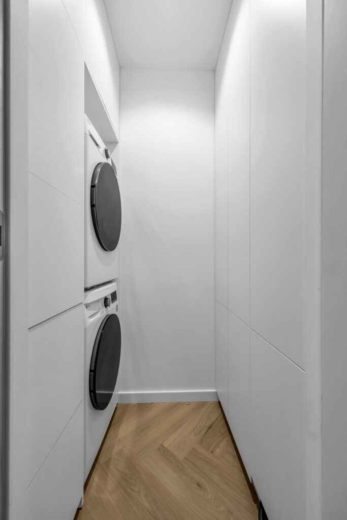 Pralnia na wymiar – funkcjonalna zabudowa z białej płyty